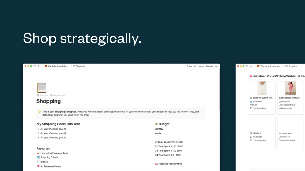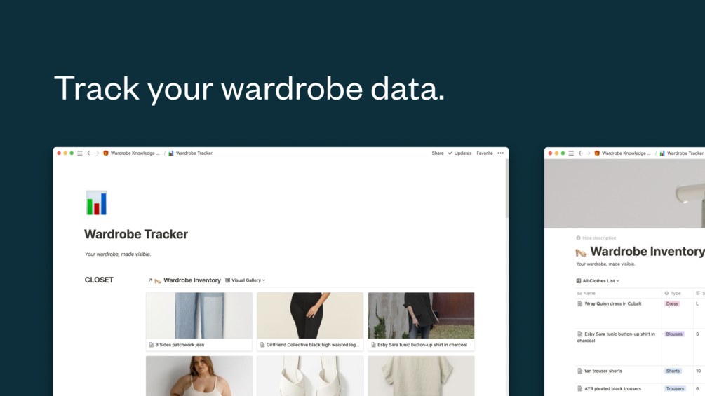 Unlike other Notion templates for your closet, this isn't just a closet inventory or wishlist tracker. It's all of that and so much more.